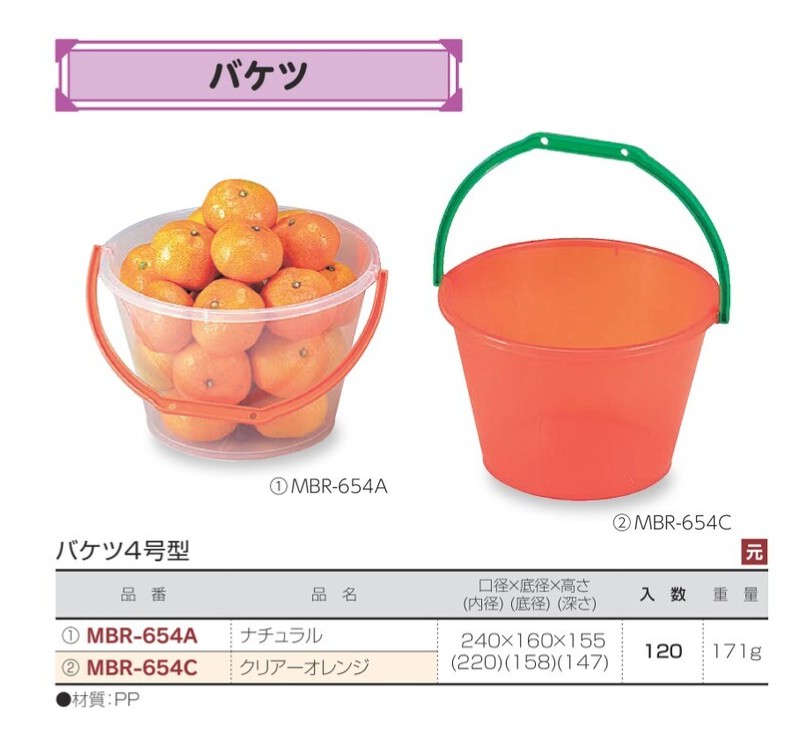 【廃番】フルーツ バケツ 4号型 クリアーオレンジ MBR-654C 240×160×155 贈答容器 バケツ