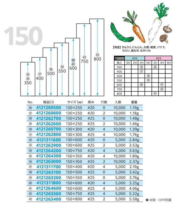 精工 P-OPP防曇準規格 #20 150×350 4H 袋 青果物 無地 平袋 その他