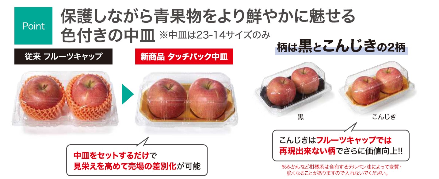 Point 保護しながら青果物をより鮮やかに魅せる 色付きの中皿