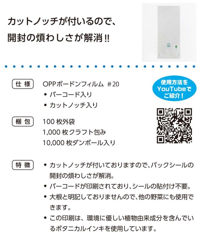 ・カットノッチが付いておりますので、バックシールの開封の煩わしさが解消。