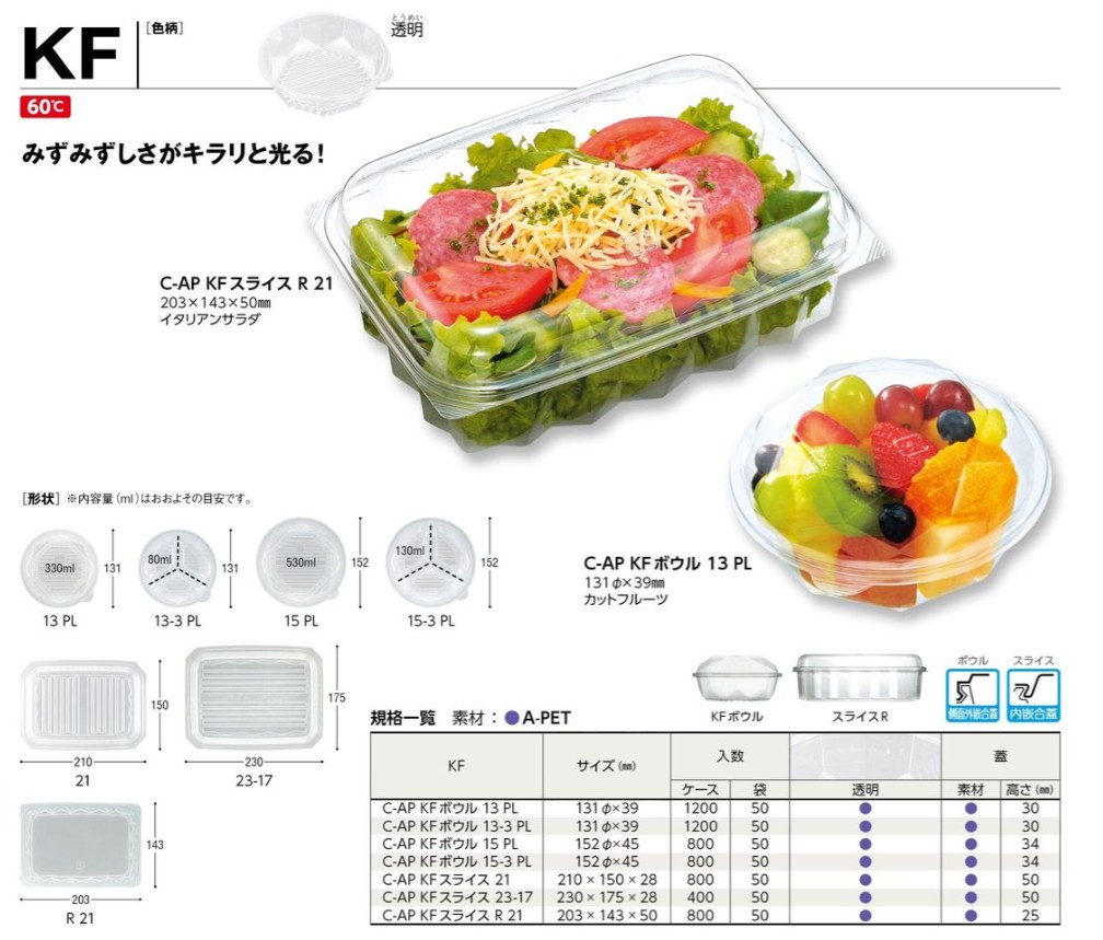 中央化学 C-AP KFボウル 13-3 PL 3仕切 透明 131φ×39 カップ 丸カップ 本体
