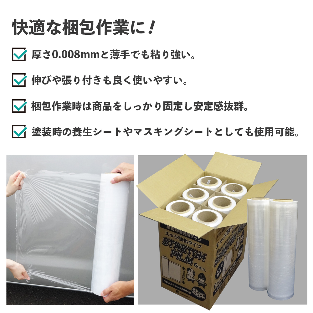 サンキョウプラテック ストレッチフィルム 透明 薄手 エッジ強化タイプ STR-450-08E #8 450×600m ラップ 梱包用 その他