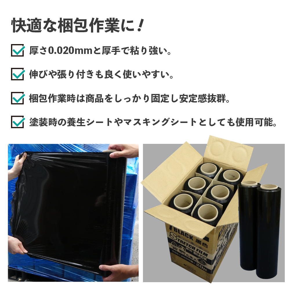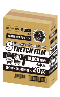 サンキョウプラテック ストレッチフィルム ブラック(黒) STR-500-20BK #20 500×300m ラップ 梱包用 500幅