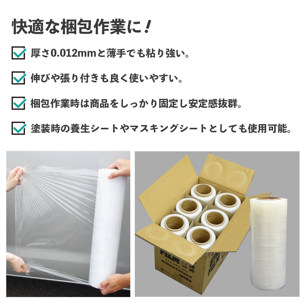 サンキョウプラテック ストレッチフィルム 透明 STR-500-12 #12 500×500m ラップ 梱包用 500幅