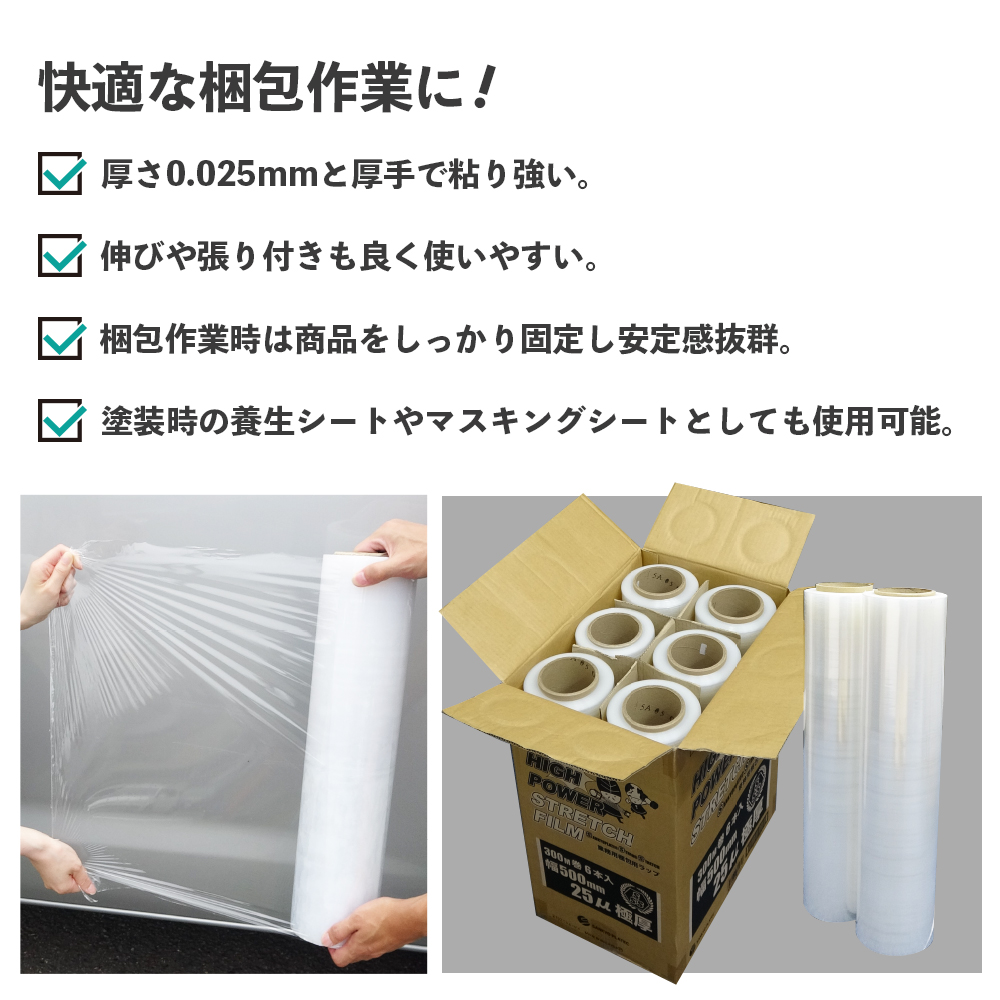 サンキョウプラテック ストレッチフィルム 透明 極厚 STR-500-25 #25 500×300m ラップ 梱包用 500幅