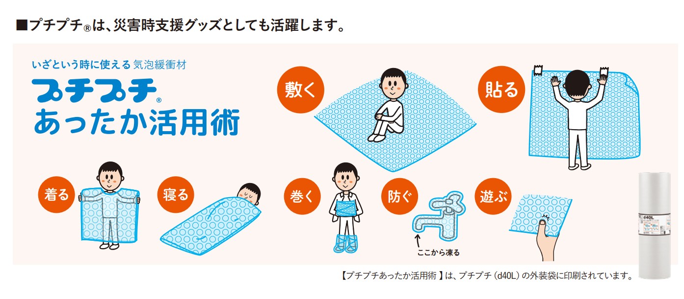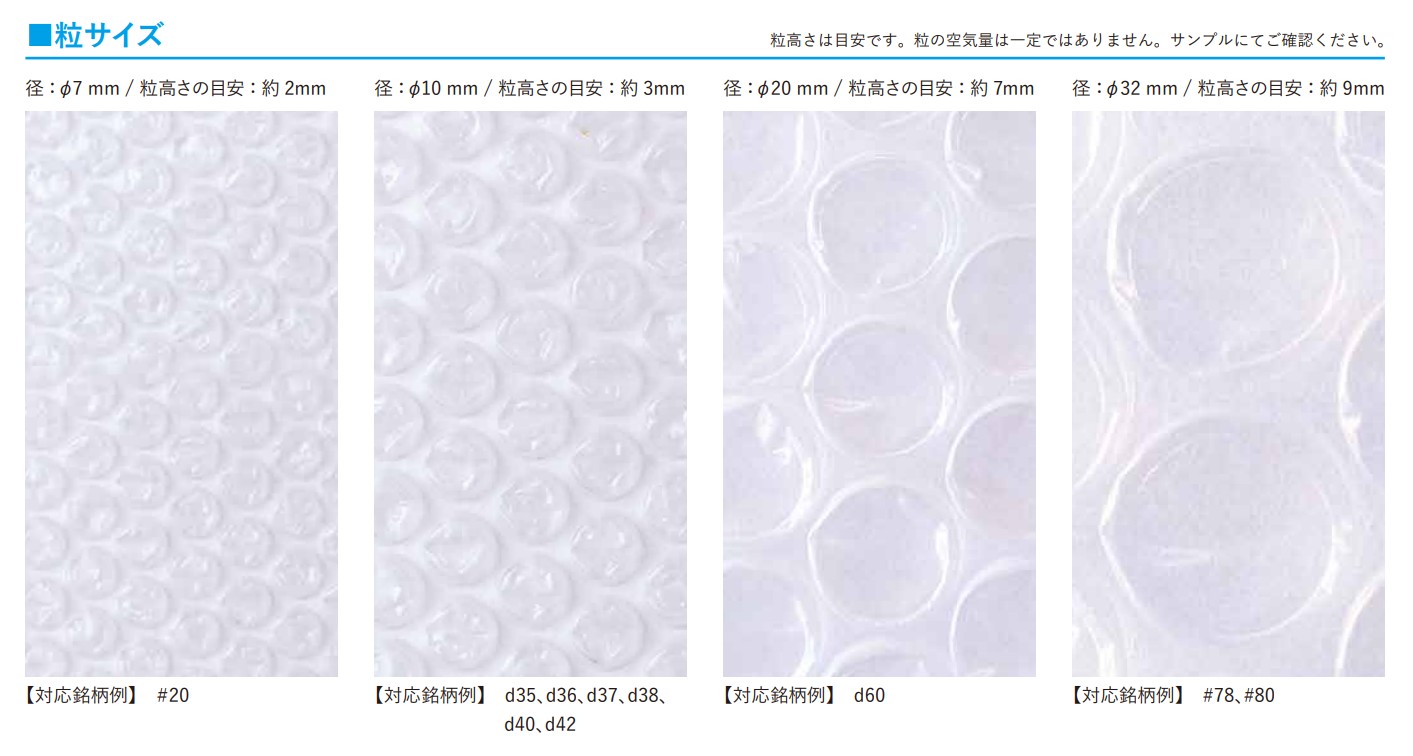 気泡緩衝材でおなじみの「プチプチ®」です。豊富な種類で、あらゆる物を空気の力でやさしく守ります。