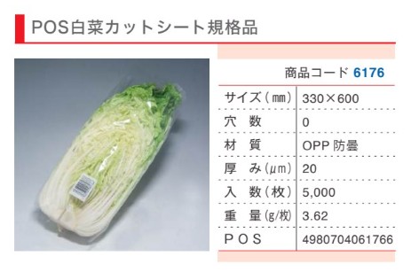 ベルグリーンワイズ POS白菜カットシート 規格品 6176 #20 330X600 フィルム 青果物 シート