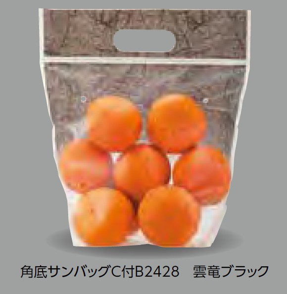 エフピコチューパ 角底サンバッグ チャック付き B2428 雲竜ブラック 240×280+45 4H 袋 青果物 印刷 スタンド袋
